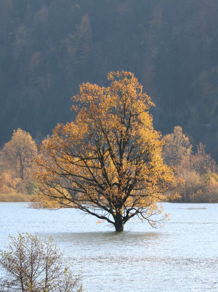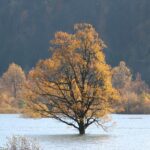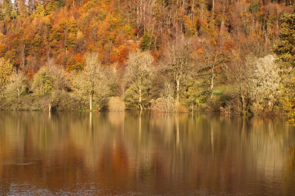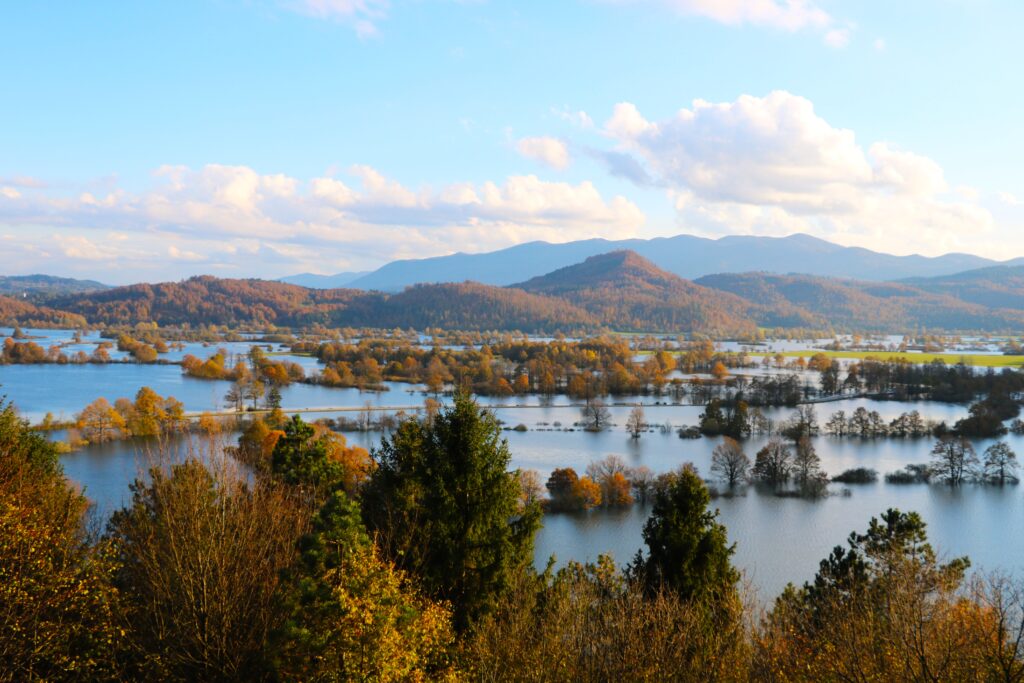 Narava se je obarvala v jesenske barve. Na Planinskem polju se ogleduje v zrcalu presihajočega jezera.