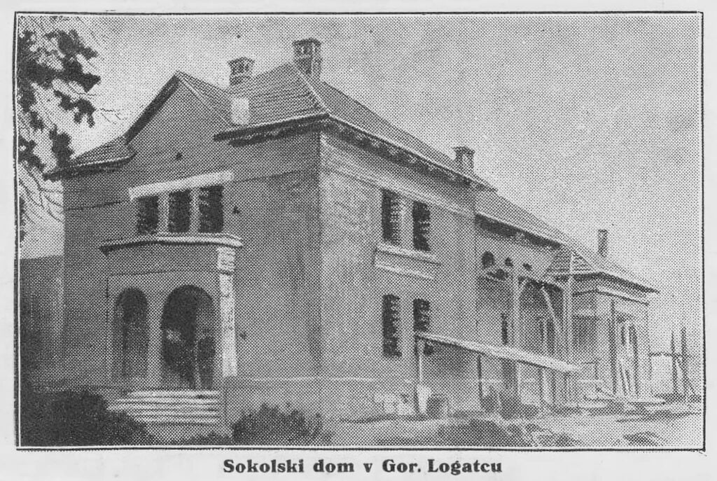 Sokolski dom v Dolnjem Logatcu (Vir: https://www.kamra.si/it/collezioni-digitali/item/dolnji-logatec.html)
