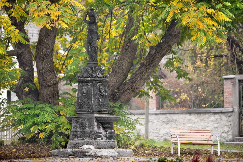 Litoželezni vodnjak z nimfo na Čevicah (Vir: https://kraji.eu/slovenija/logatec/eng)