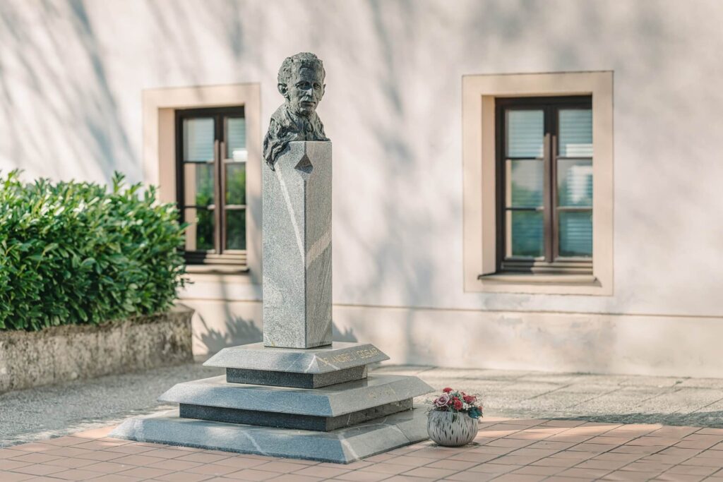Doprsni bronasti kip dr. Andreju Gosarju v Dolnjem Logatcu (Vir: https://kraji.eu/slovenija/logatec/eng)