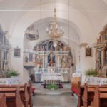 Kot priča letnica 1684, najdena na podstrešju prezbiterija, je bil takrat bržkone sočasno podaljšani in razširjeni ladji prizidan prezbiterij z banjasto štukiranim obokom. Z letnico1730 datiran lesen veliki oltar je rezultat več predelav. V tronu je baročen kip zavetnice Katarine Aleksandrijske z zobatim kolesom ob nogah, palmovo vejico v desnici in mečem v levici, obdajata jo kipa Lucije s pladnjem z očmi in Barbare s kelihom – torej so vse svetnice upodobljene s svojimi običajnimi atributi. V niši atike je kip sv. Florijana, ki ga obstopata apostola Peter in Pavel s knjigo v rokah. Stranska oltarja in prižnica so mlajši (1866).
