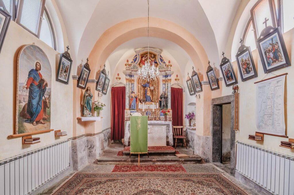 Pravilno orientirano cerkev v tlorisu od zahoda proti vzhodu sestavljajo kvadraten zvonik, pravokotna ladja in kratek, od ladje malenkost ožji pravokotno zaključen prezbiterij, na južni strani pa je ob stiku ladje in prezbiterija prizidana zakristija. Današnja cerkev (v osnovi iz 16. stoletje) je bila zgrajena leta 1746, o čemer je pričala zdaj zazidana letnica nad vhodom. Lesen stebrni nastavek velikega oltarja baročnih oblik krasijo kipi evangelista Luke z volom ob nogah v tronu ter apostola Jakoba starejšega in sv. Antona Puščavnika ob njem; v atiki je skupina Marijinega kronanja. Slika nazarenskega slikarja Antona Jebačina (1850–1927) iz leta 1903, ki je nekdaj zapirala tron, visi na severni ladijski steni. Ob južni zunanjščini je postavljeno znamenje z lesenim Križanim iz 19. stoletja, ki je sprva stalo v Grapi ob poti na Planinsko polje.